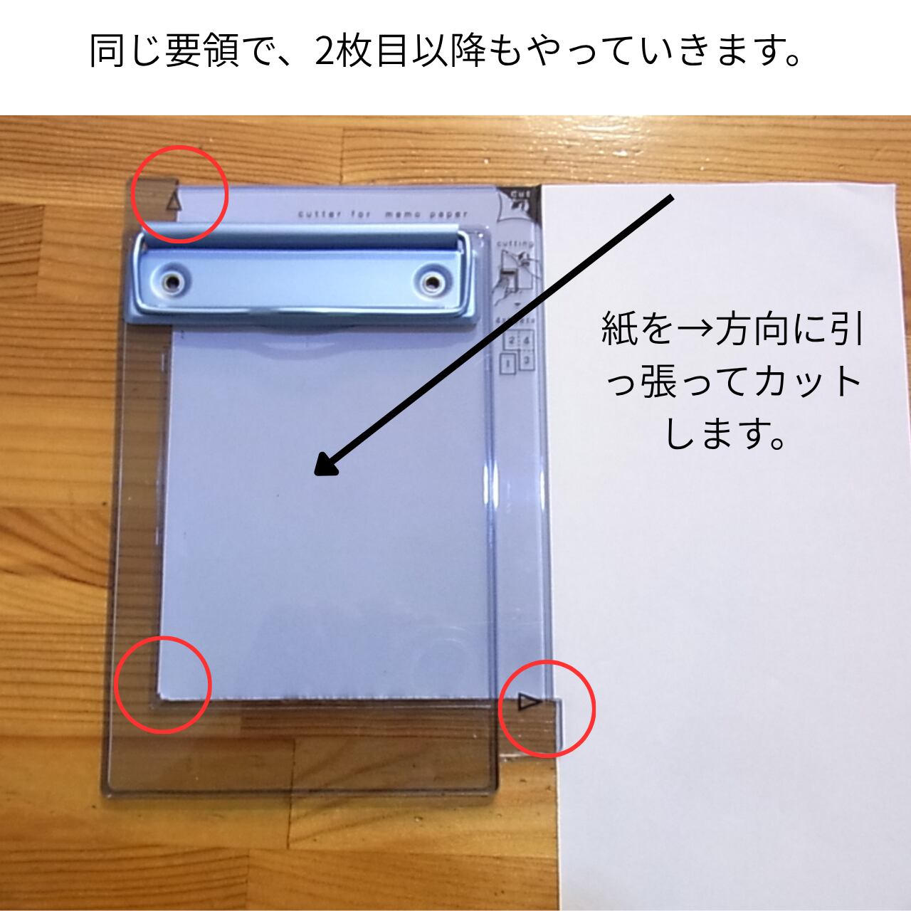・カット後の紙は、そのまま本体に付属している強力なクリップ(バインダー)に挟めばメモ帳としてすぐに使えます。