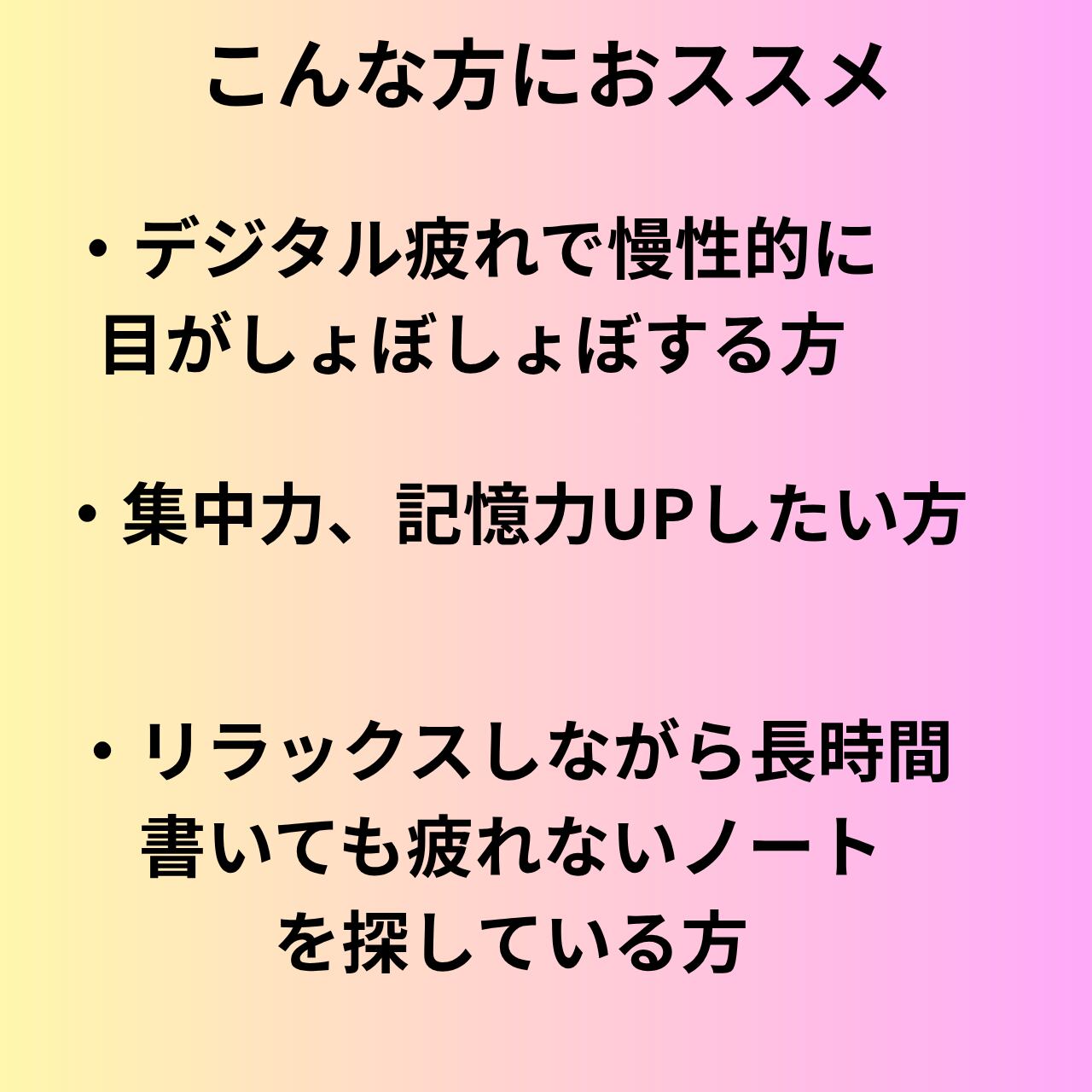 PCやスマホを長時間見ると生じる目のしょぼしょぼ感や慢性的な疲れにもマホラノートは見やすく、書きやすくて使いやすいノートになっています。