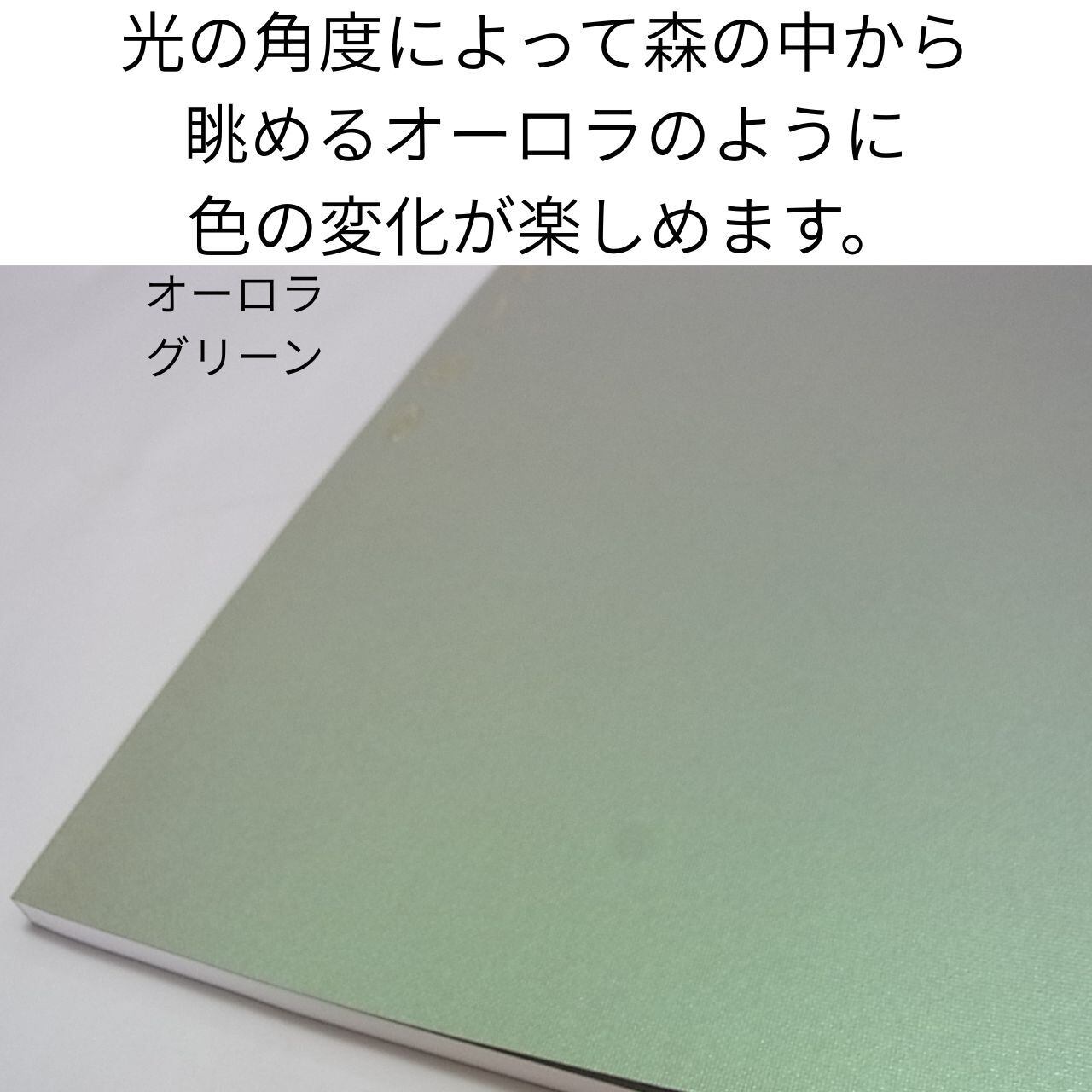 最大の特徴は、オーロラのように変化する表紙。光の角度や時間帯によって、表情を変えます。