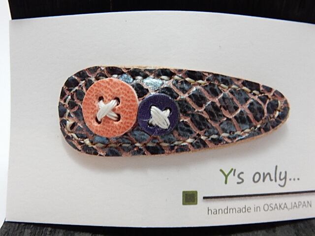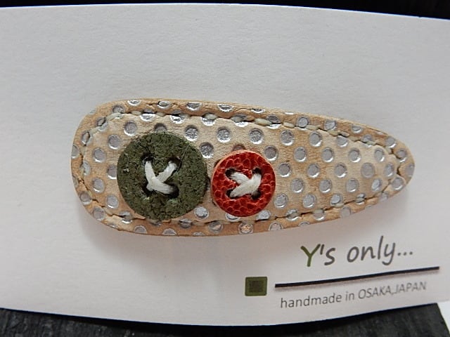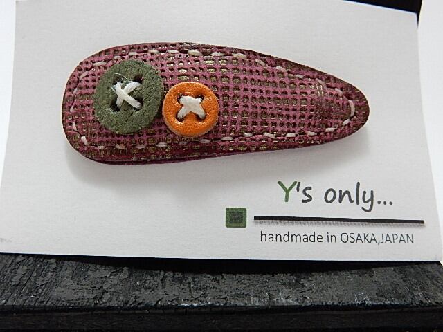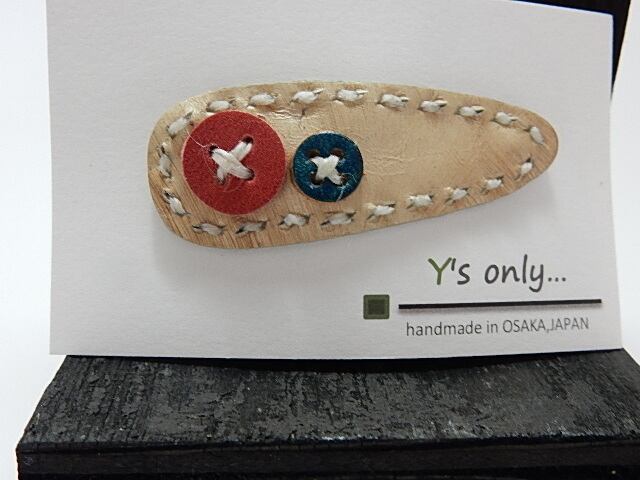 非常に綺麗な色のレザーヘアピン。暑い季節や髪が伸びてちょと邪魔やなぁって思った時に可愛く簡単にパッチンするだけ。大小の色違いのボタンも付いていてあなたのヘアースタイルを彩ります。これを髪に留めるだけで、きっと誰もが振り返ります。