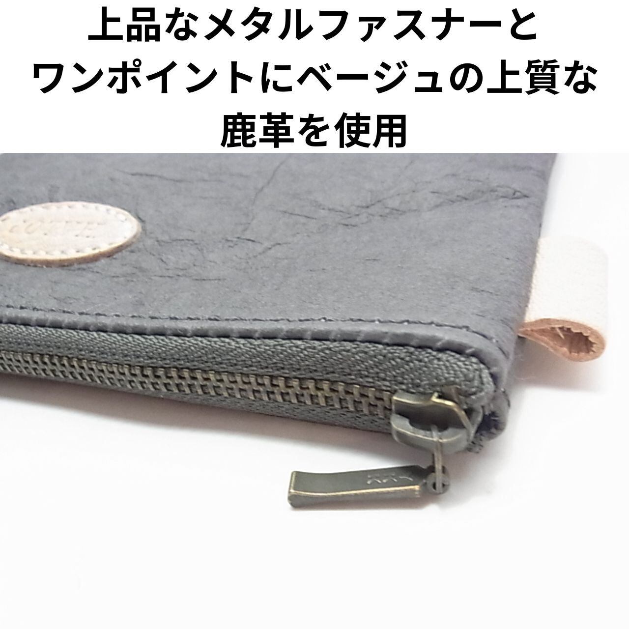 初めて見て触った時に「え!?革!?」と思うほどシボ革の感触に近く、少し紙らしいざらつきがあるぐらいです。